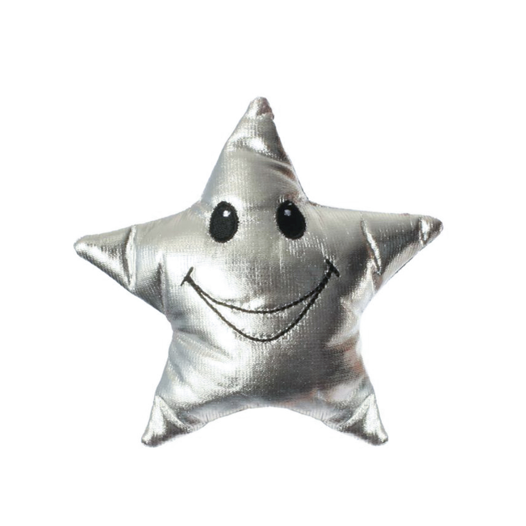 Fem-tagget sølvstjerne som også er fingerdukke. 12 cm høy.