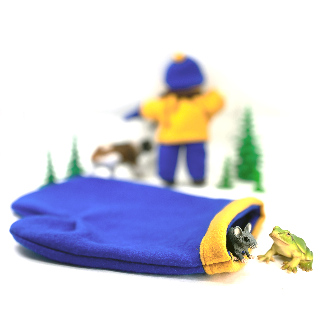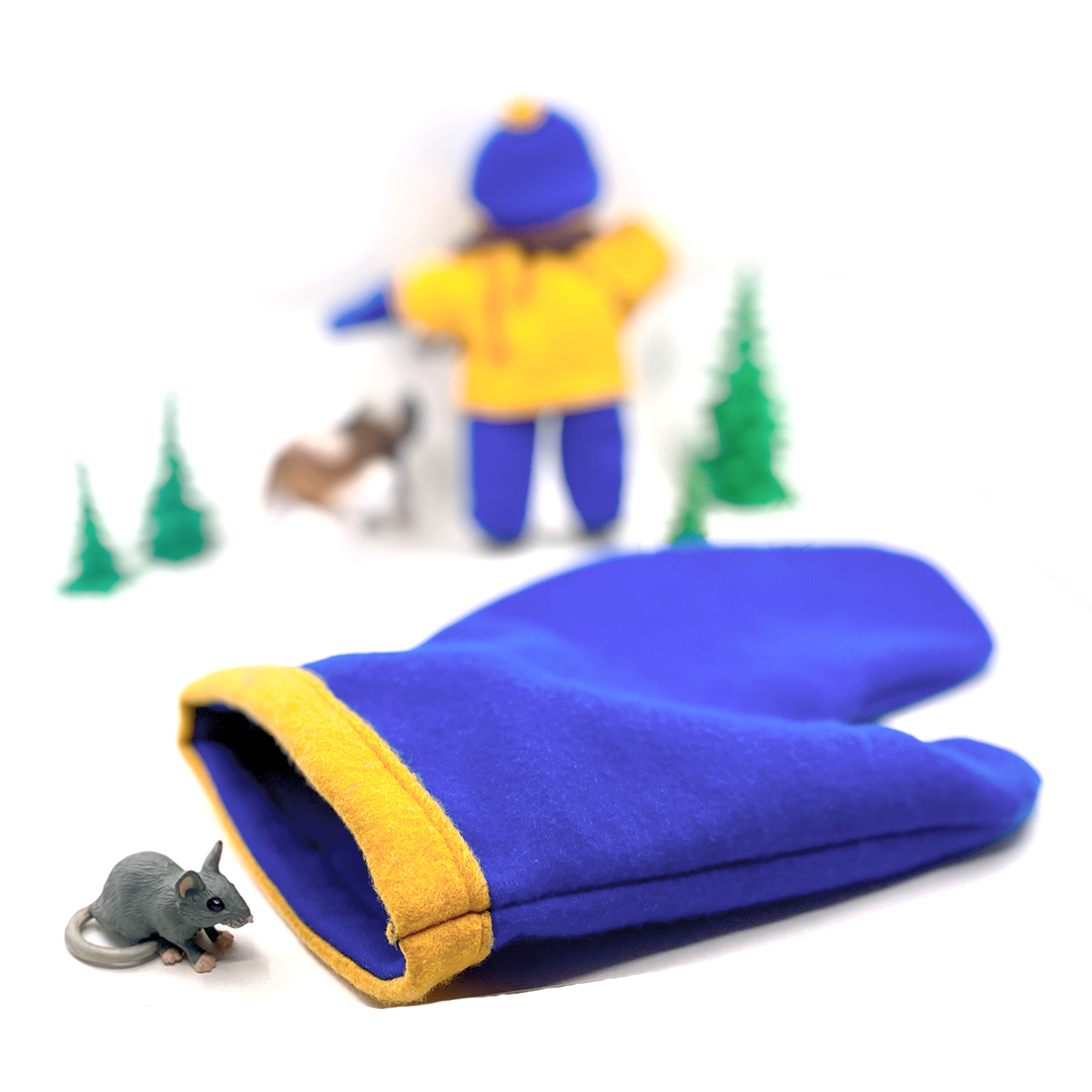 Handling: Mannen går tur med hunden sin og mister votten. Musa flytter inn. Frosken, haren, reven, ulven, villsvinet og bjørnen får også bo i votten. Når mannen og hunden kommer tilbake, flykter dyrene.