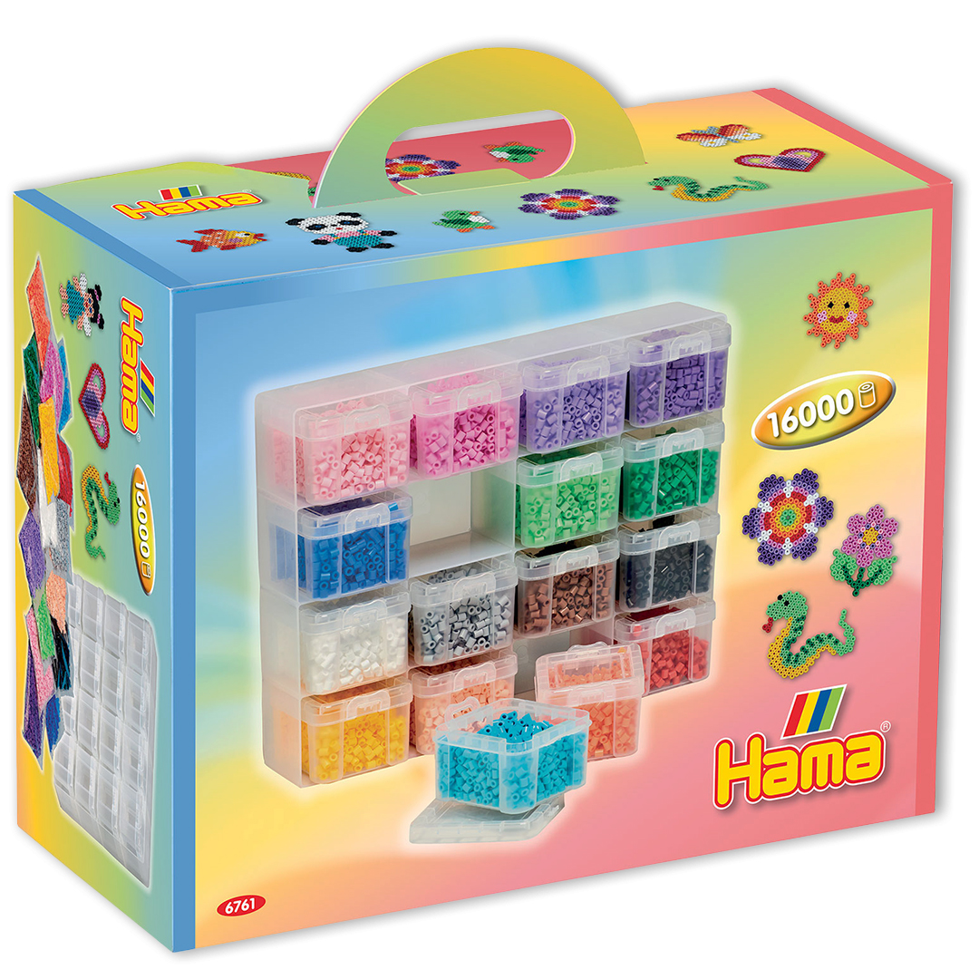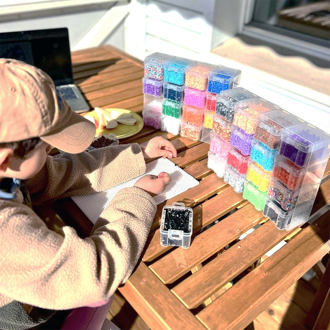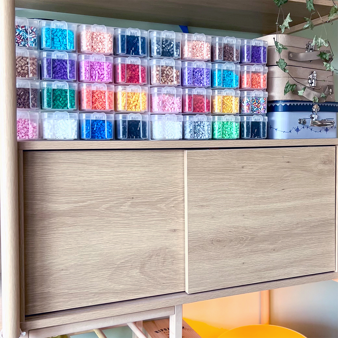 Oppbevaring til perler med 16 bokser og 16 poser med 1000 x perler.