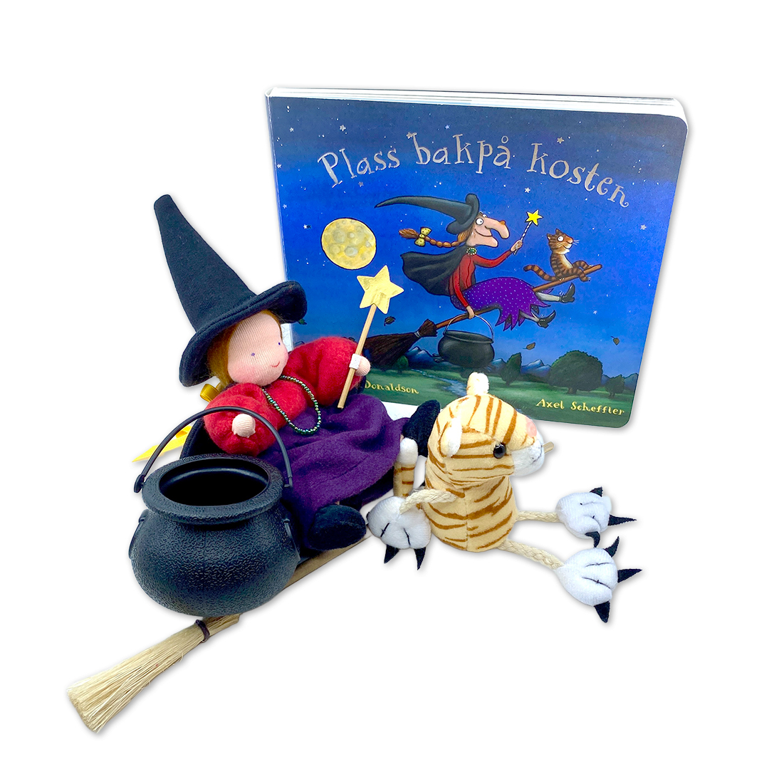 Heksegryte: Svart gryte i plast. Ikke sertifisert som leketøy, men med god illustreringseffekt, 14 år +.
